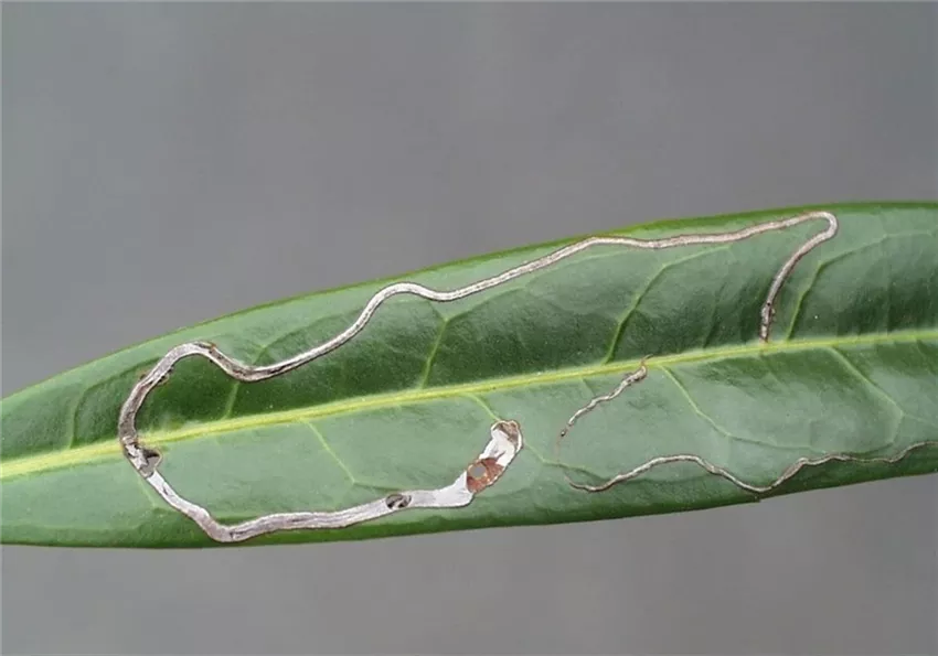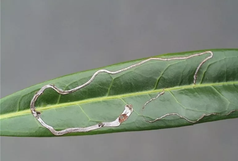 In den Blättern befinden sich geschlängelte feine Gänge.