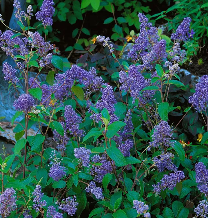 Die Französische Hybrid-Säckelblume (Ceanothus delilianus) ein lockerer Kleinstrauch, der, je nach Sorte, Blüten in verschiedenen Farben hervorbringt. An einem sonnigen bis halbschattigen Standort mit durchlässigem, kalkhaltigem, lockerem Boden erreicht sie gewöhnlich eine Höhe von ca. 1,5 m und wird ca. 1,5 m breit.