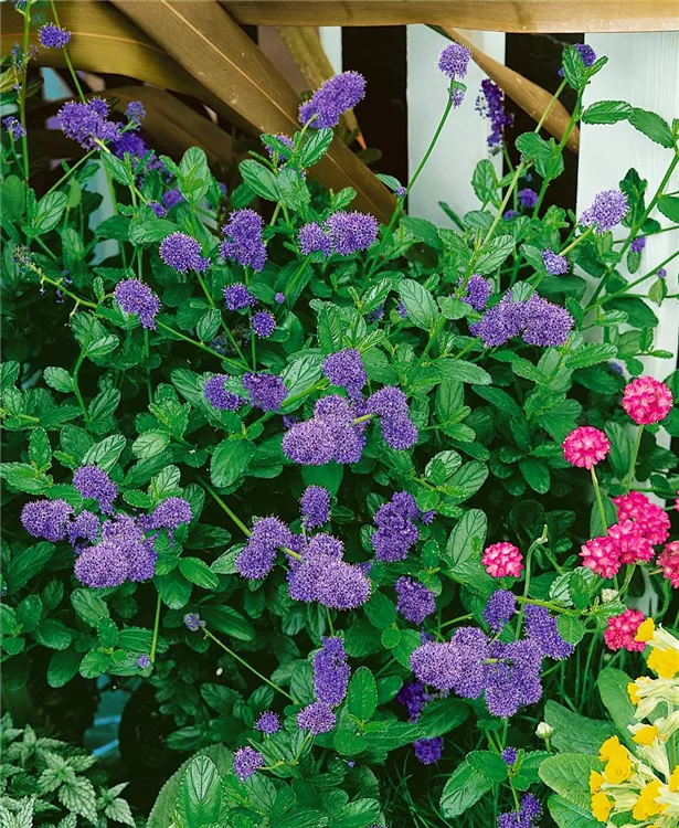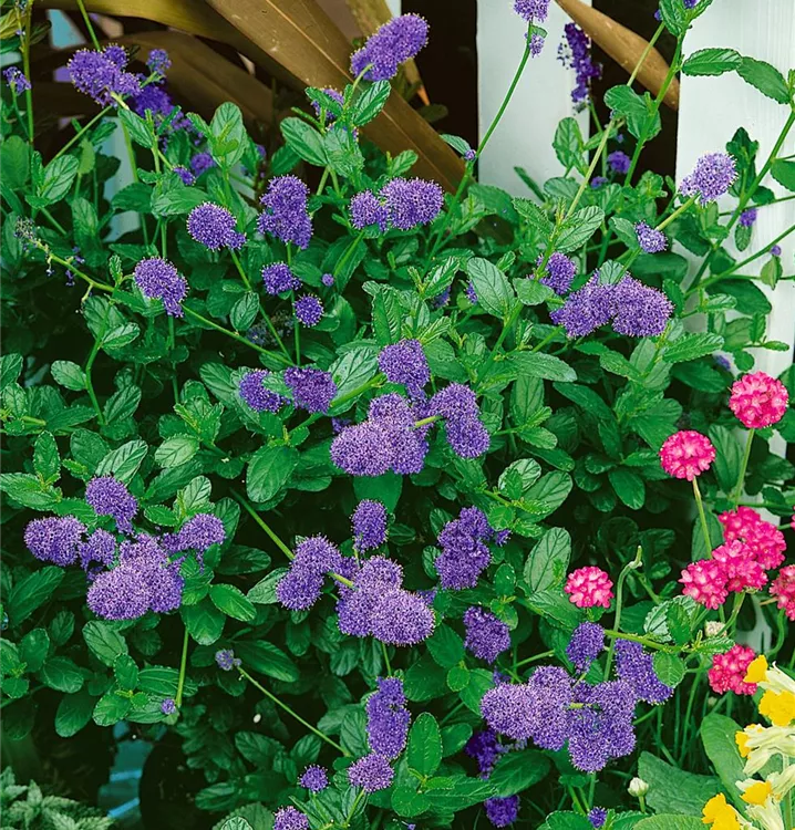 Der Amerikanische Flieder (Ceanothus griseus) eine buschige, breite Gartenpflanze, die, je nach Sorte, Blüten in verschiedenen Farben hervorbringt.