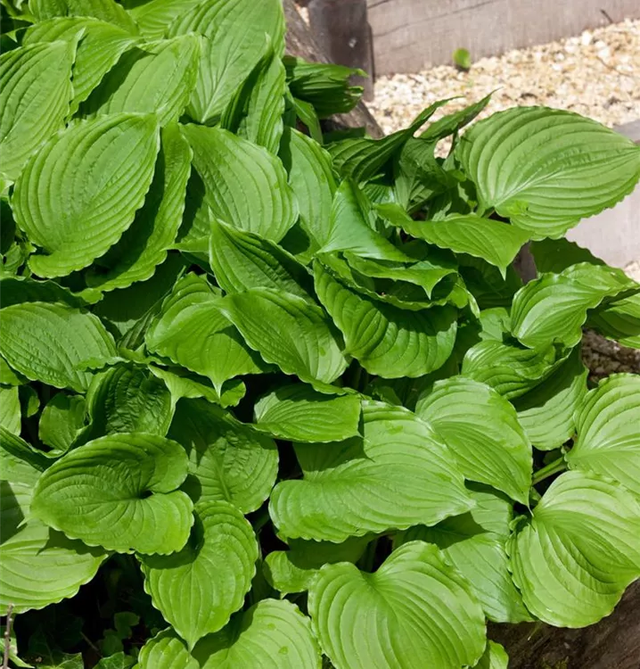 Hoher Blattschmuckwert. Die sommergrünen Blätter der Glocken-Funkie sind dunkelgrün, herzförmig, grundständig, ganzrandig.