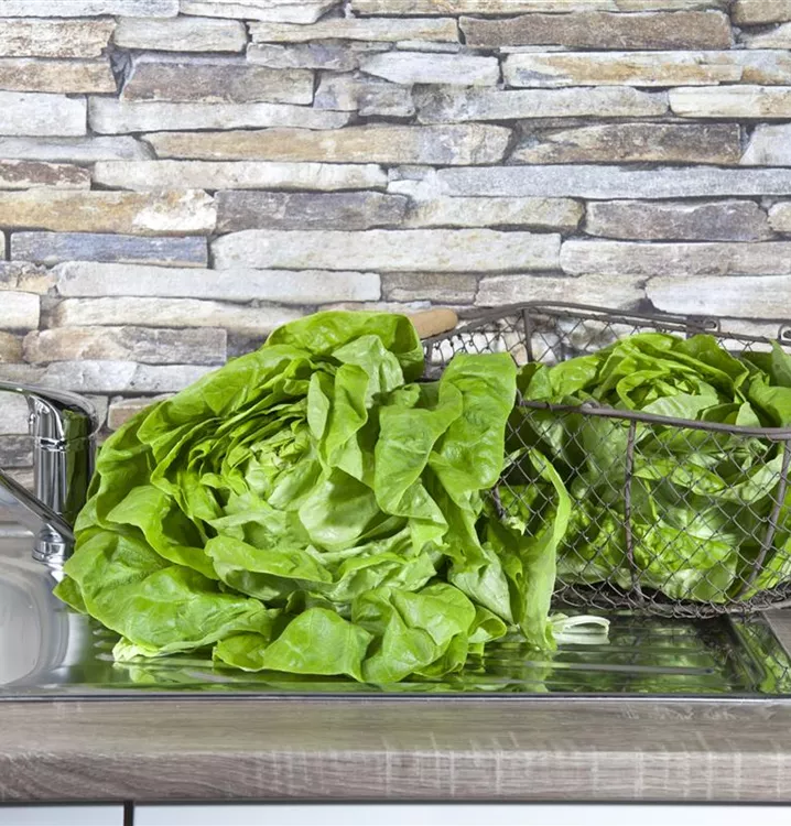 Der Kopfsalat (Lactuca sativa) ist eine aromatisch schmeckende Gemüsepflanze. Seine Blätter können geerntet werden, sobald er ca. 20 erreicht hat. Für das optimale Wachstum des Kopfsalats werden ein sonniger Standort und durchlässiger, nährstoffreicher Boden benötigt.
