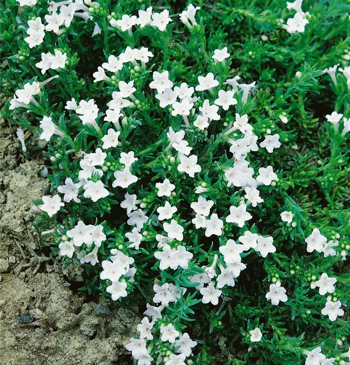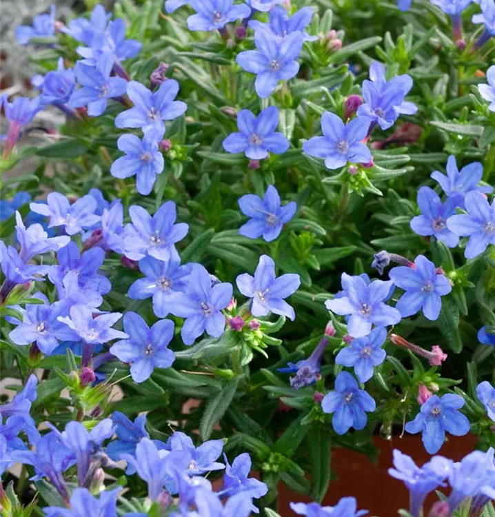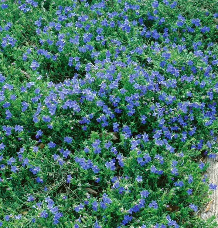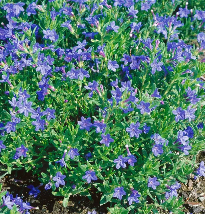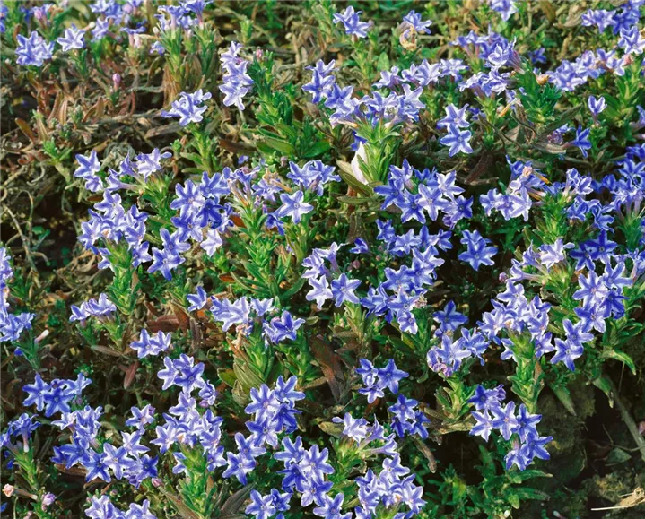 Die Garten-Scheinsteinsame (Lithodora diffusa) ist eine mattenbildende wintergrüne Staude, die von Mai bis Juli blaue Blüten bildet. An einem sonnigen, windgeschützten Standort mit durchlässigem Boden erreicht sie gewöhnlich eine Höhe von ca. 20 cm und wird ca. 30 cm breit. Die Garten-Scheinsteinsame ist gut frostverträglich.