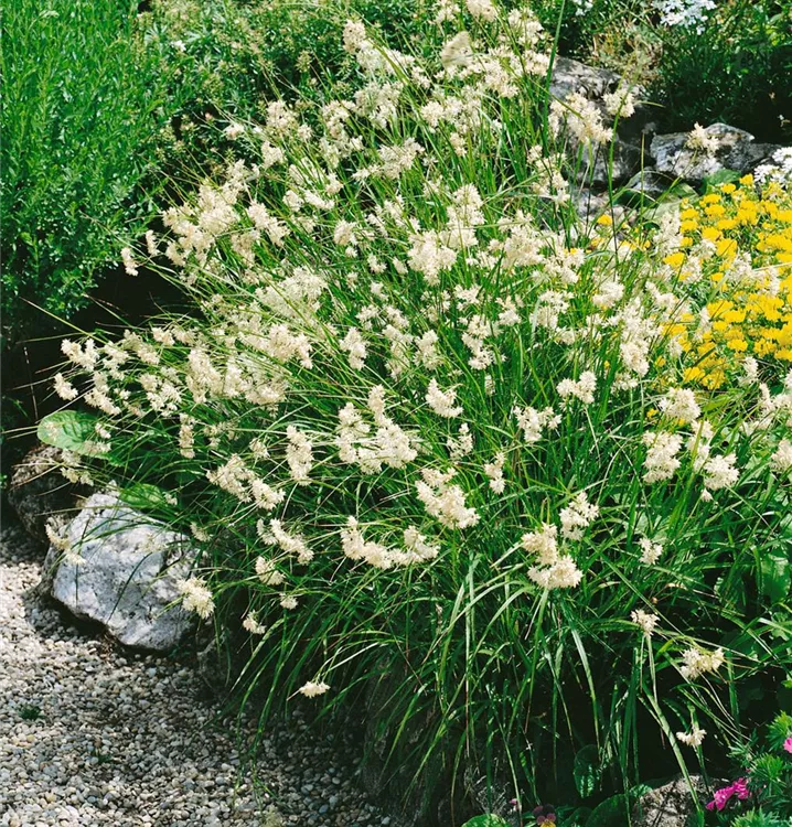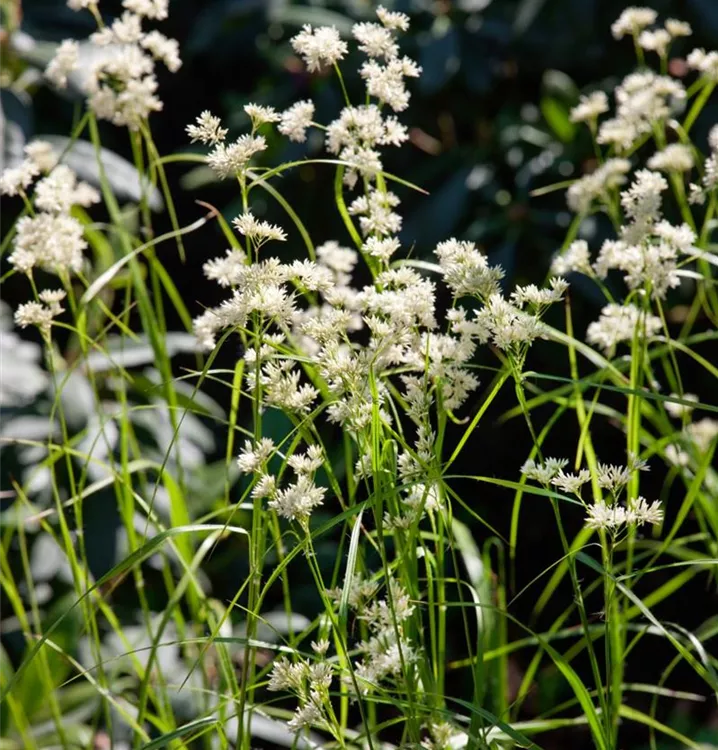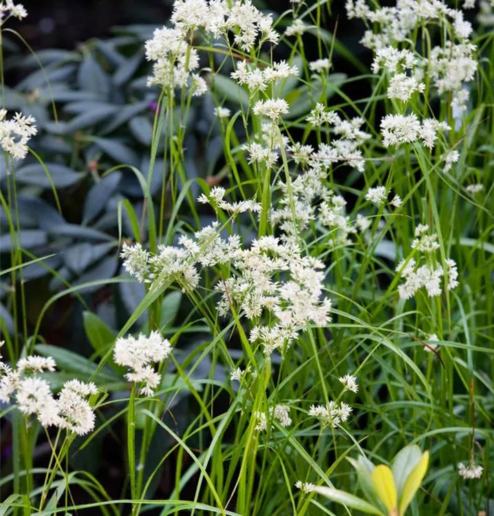 Die Schnee-Hainsimse (Luzula nivea) ist mit ihrer mittelgrünen Blattfärbung ein dekoratives Gestaltungselement im Garten, welches sich an einem halbschattigen Standort mit einem möglichst durchlässigen, humosen Boden am wohlsten fühlt. Die weißen Blütenwedel schmücken die buschig, breit und dicht wachsende Pflanze ab Sommer. Bei günstigen Bedingungen erreicht dieses winterharte Gras eine Höhe von ca. 20 cm und wird bis zu 20 cm breit.