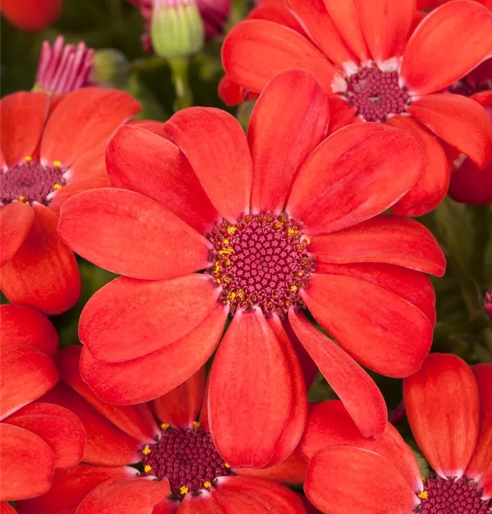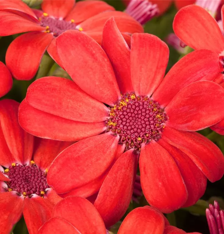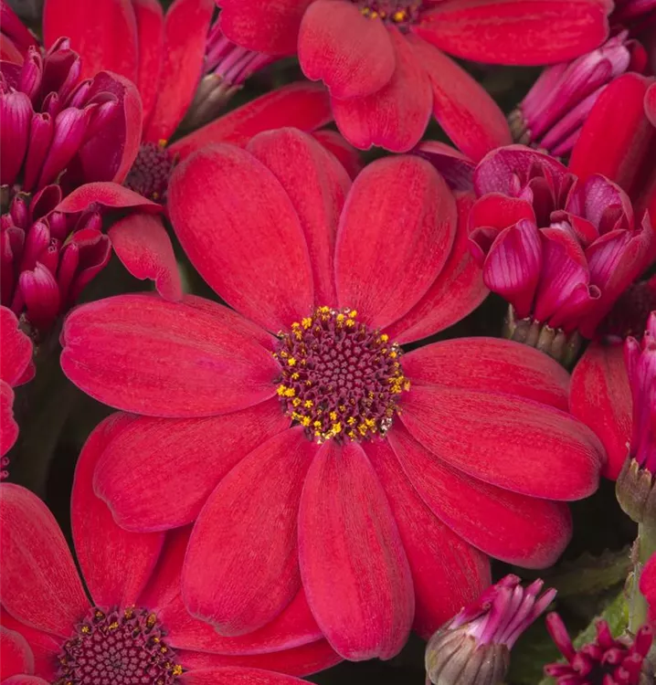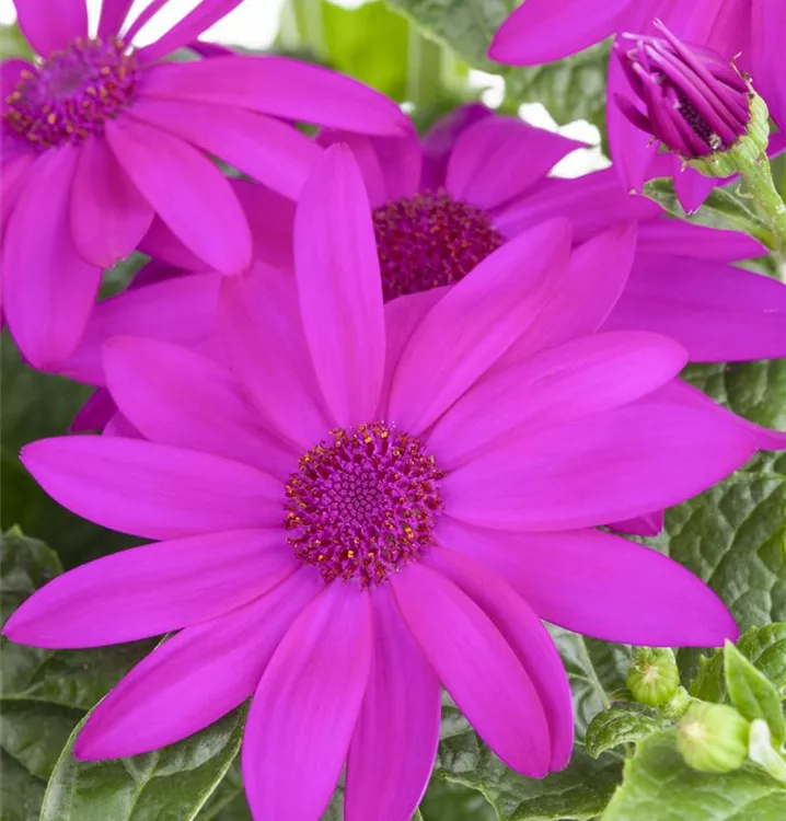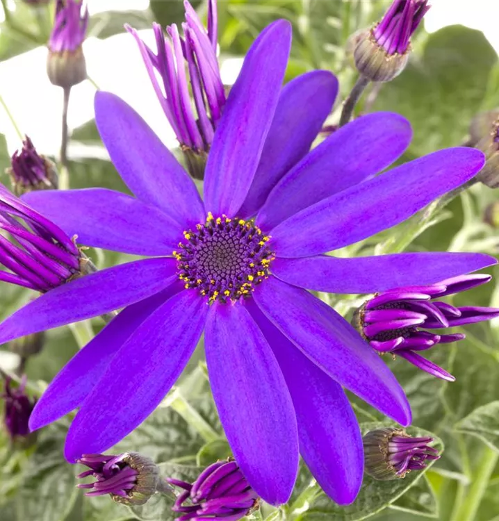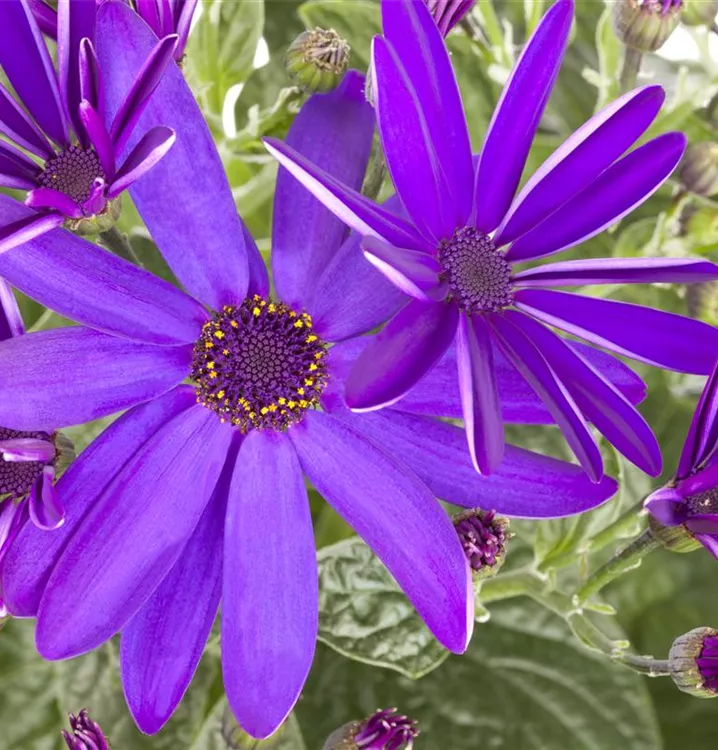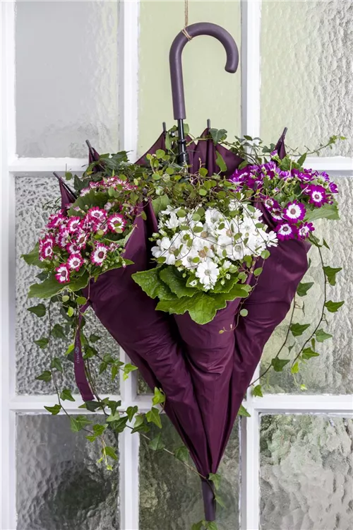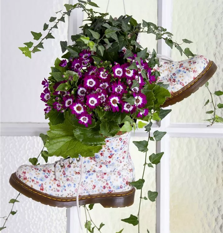 Die Cinerarie (Senecio cruentus) ist eine beliebte Pflanze für den Balkon. Die unzähligen Blüten erscheinen, je nach Sorte, in verschiedenen Farben die ganze Saison hindurch. Ein sonniger bis halbschattiger Standort und ein durchlässiges Substrat werden bevorzugt.
