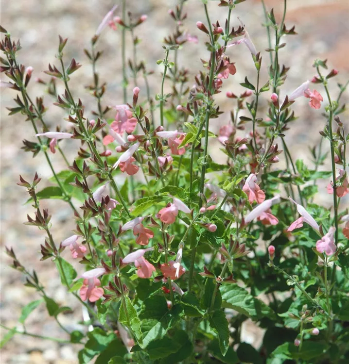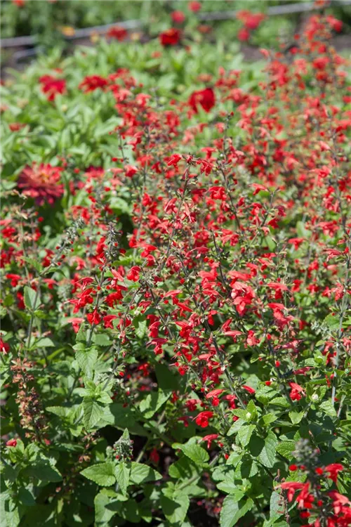 Der Blut-Salbei (Salvia coccinea) ist eine aufrechte Staude, die von August bis September rote Blüten bildet. An einem sonnigen bis halbschattigen Standort mit durchlässigem, nährstoffreichem, sandigem Boden erreicht er gewöhnlich eine Höhe von ca. 1 m und wird ca. 30 cm breit.