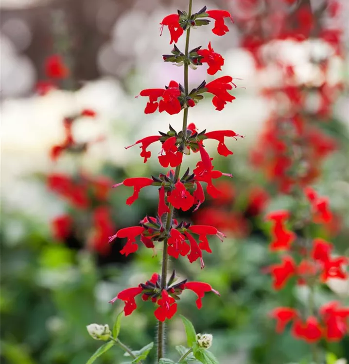 Salvia coccinea bildet rote Blüten ab August.