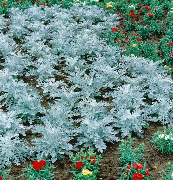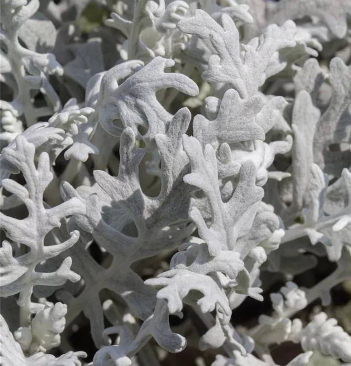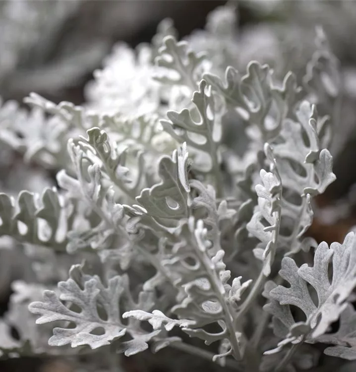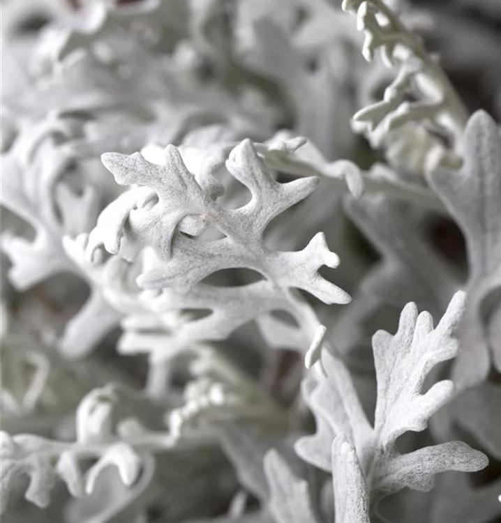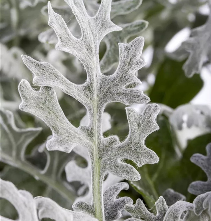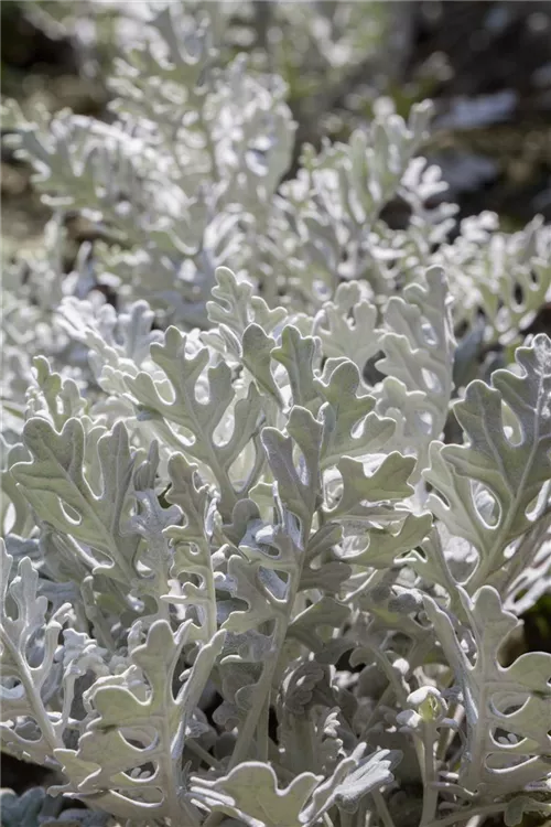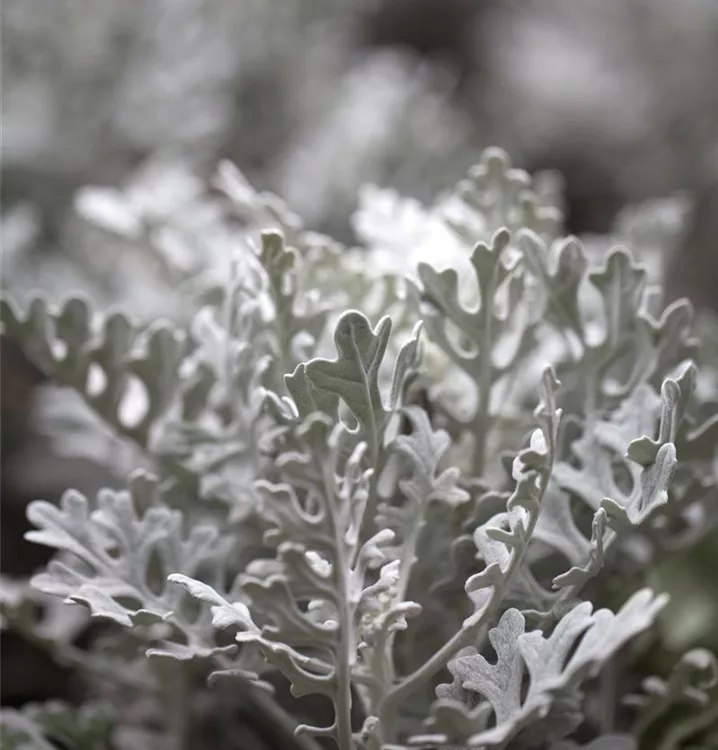 Das Silberblatt (Senecio cineraria) besitzt dekorative, silbergraue Blätter. Ein halbschattiger Standort und ein durchlässiges Substrat werden bevorzugt.