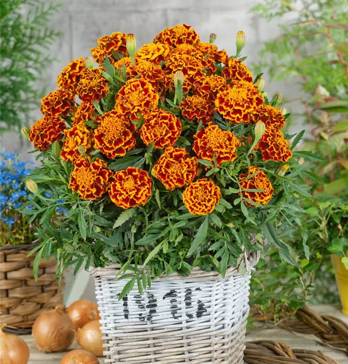 Die Niedrige Studentenblume (Tagetes patula) ist eine beliebte Pflanze für den Balkon. Die unzähligen, leicht duftenden Blüten erscheinen, je nach Sorte, in verschiedenen Farben die ganze Saison hindurch. Ein sonniger bis halbschattiger Standort und ein durchlässiges Substrat werden bevorzugt.