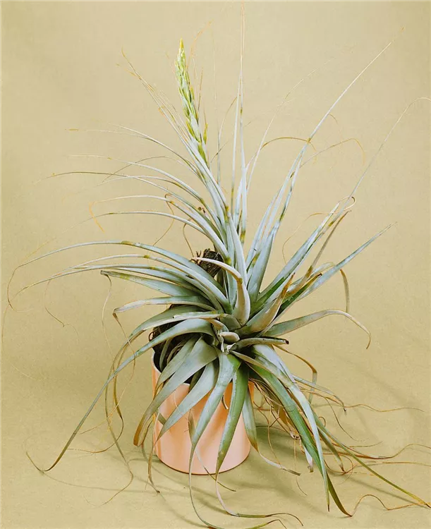 Die immergrünen Blätter der Tillandsie sind grau-grün, lineal.