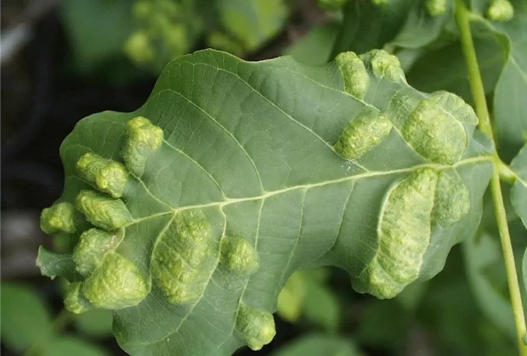 Die auffälligen Filzgallen werden durch die Saugtätigkeit einer winzig kleinen Milbe (Eriophyes erineus) verursacht. Die Tiere überwintern unter Knospen- und Rindenschuppen.