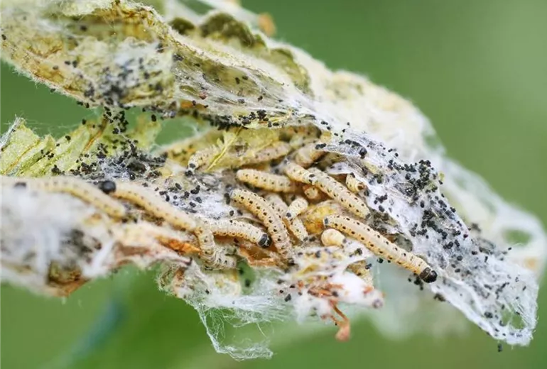 Stellt man rechtzeitig erste Gespinstbildung durch die Junglarven fest, reicht ein Entfernen der Gespinste mit der Gartenschere.