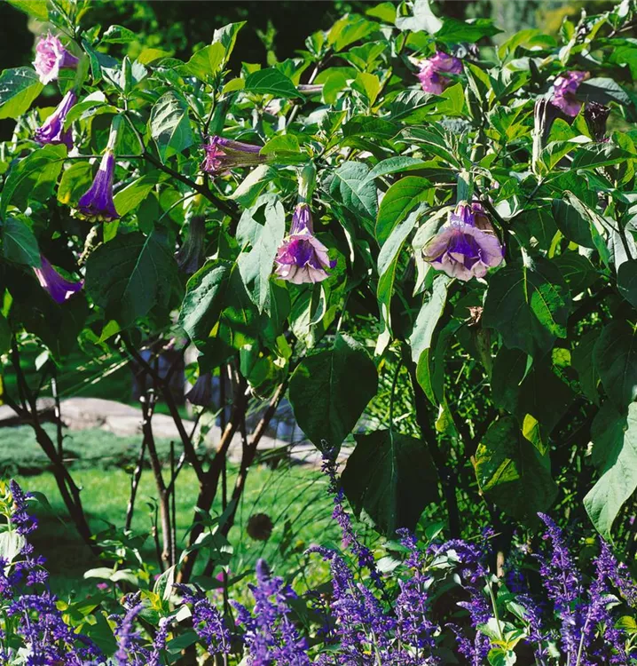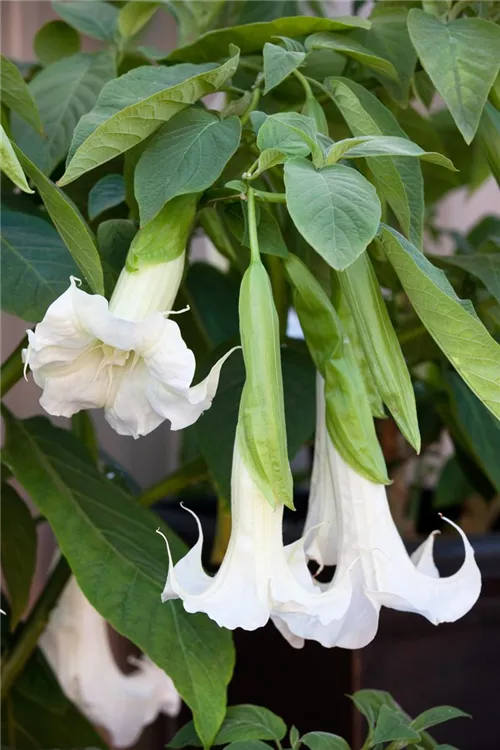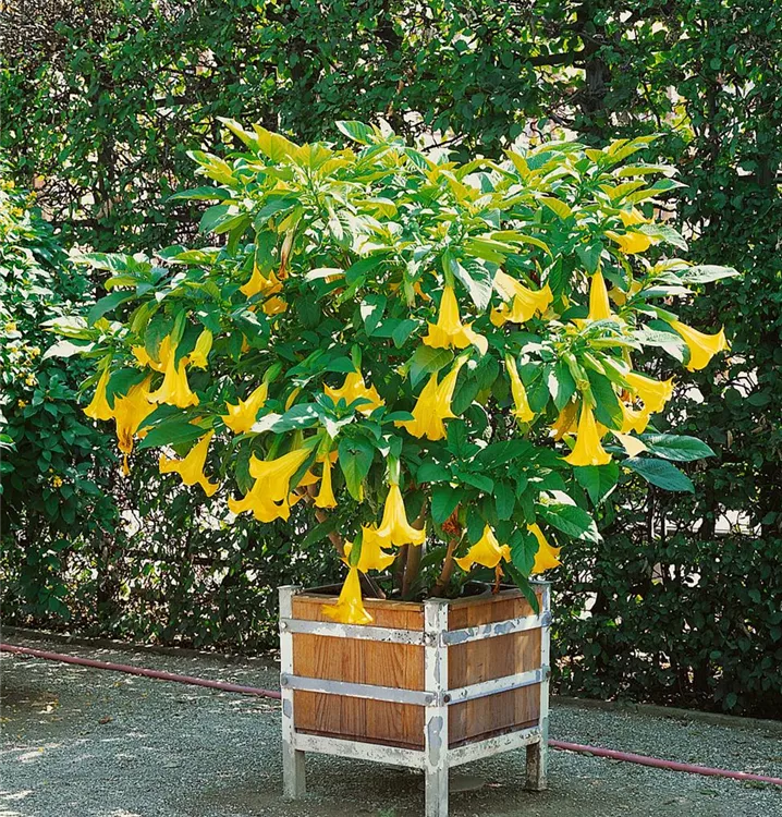 Die Brugmansia (Brugmansia) ist eine sehr beliebte Kübelpflanze. Ihre dekorativen Blüten sind glockenförmig und erscheinen von Juni bis September. Sie verströmen einen angenehmen Duft. Verwenden Sie bevorzugt die spezielle Kübelpflanzenerde, denn sie verdichtet sich über längere Zeit nicht.