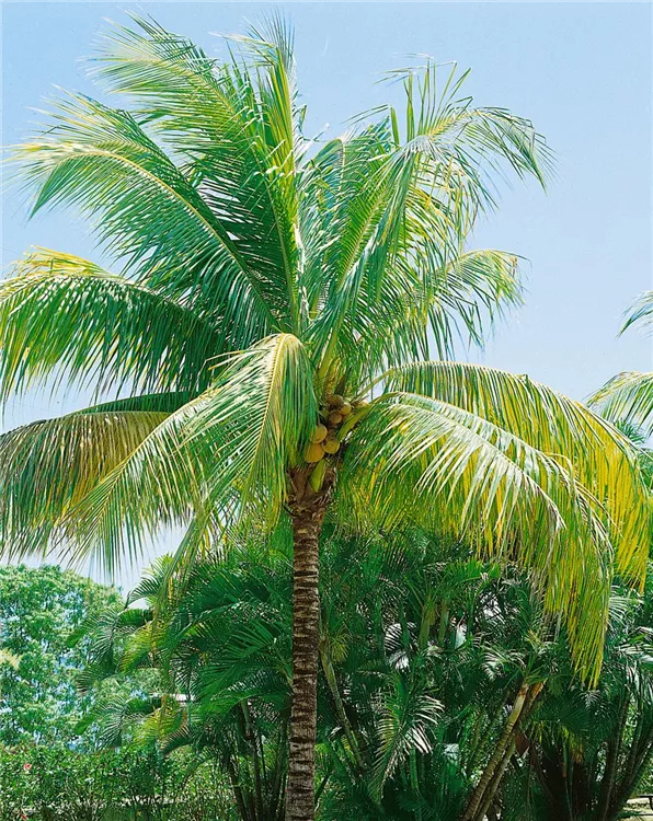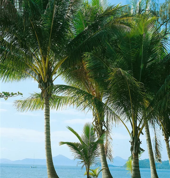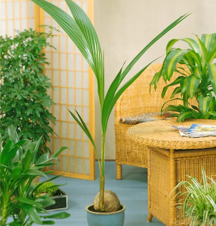 Die Cocospalme (Cocos nucifera) ist eine sehr beliebte Kübelpflanze. Verwenden Sie bevorzugt die spezielle Kübelpflanzenerde, denn sie verdichtet sich über längere Zeit nicht.