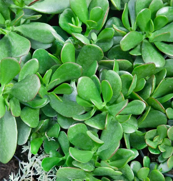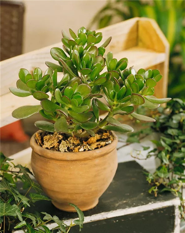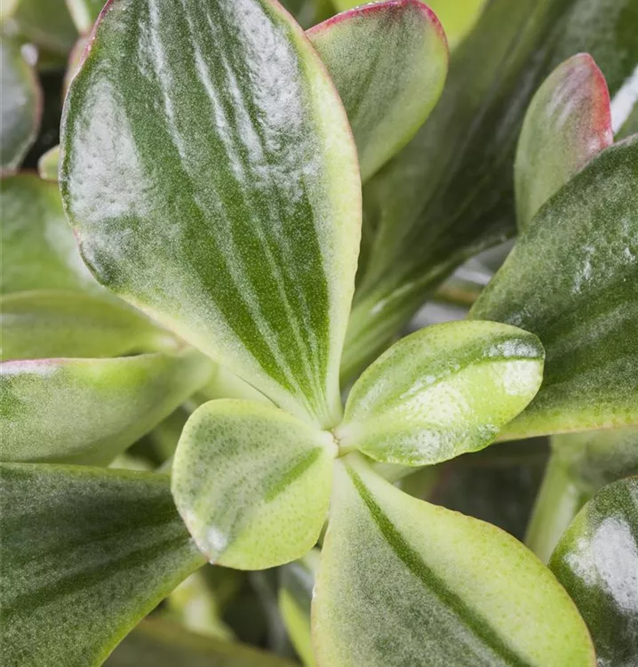 Der Geldbaum (Crassula ovata) ist eine Pflanze mit dunkelgrünen, dickfleischigen Blättern. Diese aufrechte Pflanze gedeiht am besten an einem sonnigen Standort.