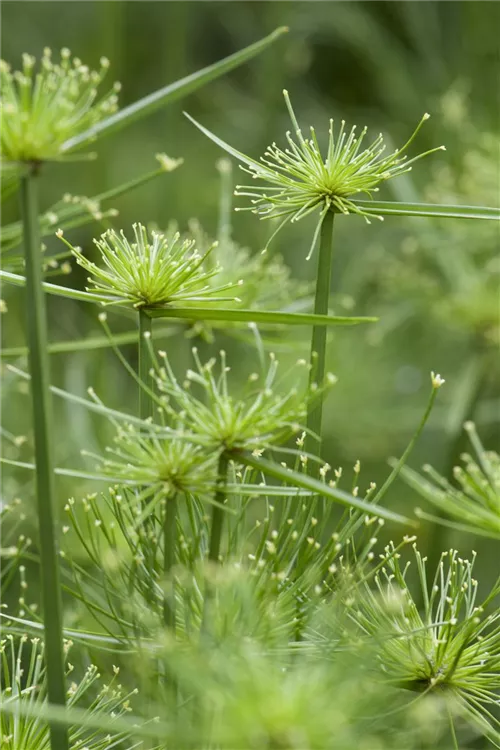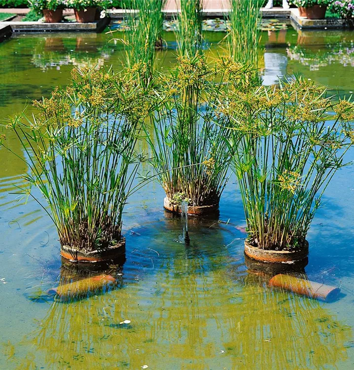 Das Zypergras (Cyperus albostriatus) ist eine sehr beliebte Kübelpflanze. Seine dekorativen Blüten erscheinen von Mai bis Juni. Verwenden Sie bevorzugt die spezielle Kübelpflanzenerde, denn sie verdichtet sich über längere Zeit nicht.