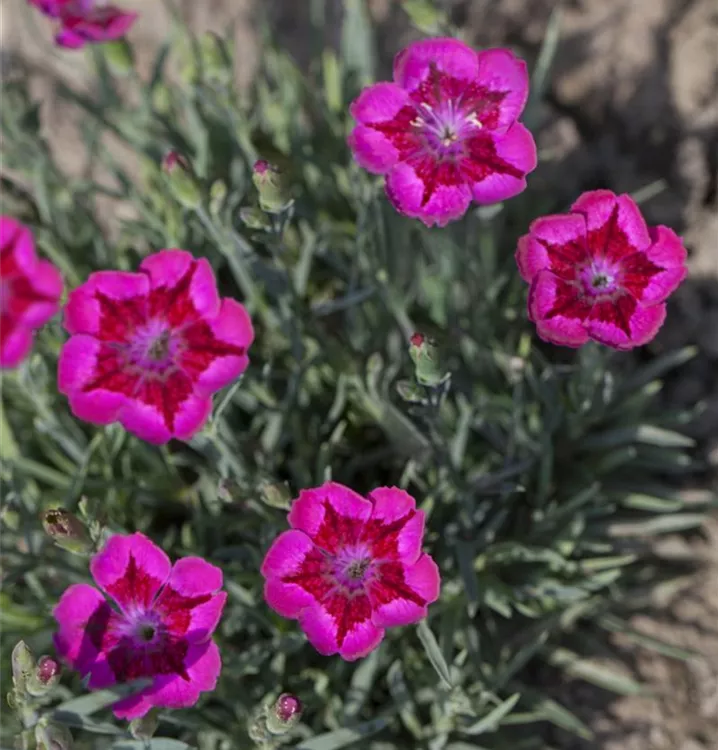 Die Nelke (Dianthus) An einem sonnigen Standort mit durchlässigem, lockerem Boden erreicht sie gewöhnlich eine Höhe von ca. 20 cm und wird ca. 20 cm breit. Die Nelke ist gut frostverträglich.