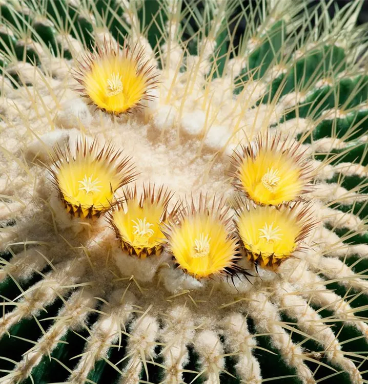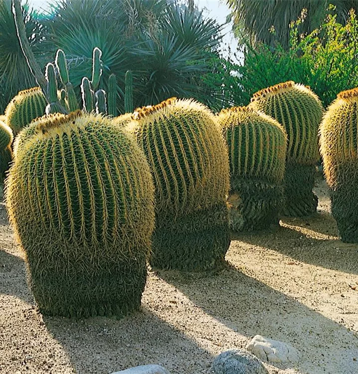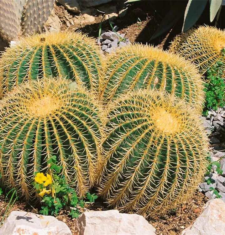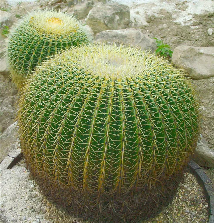 Die Triebe von Echinocactus grusonii sind bedornt.
