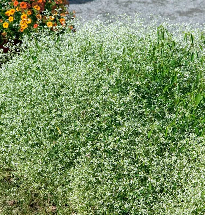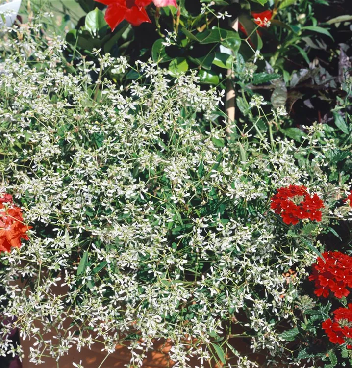 Der Zauberschnee™ 'Diamond Frost'(s) (Euphorbia hypericifolia) ist eine beliebte Pflanze für den Balkon, die während der gesamten Saison unzählige weiße Blüten bildet. Ein sonniger bis halbschattiger Standort und ein durchlässiges Substrat werden bevorzugt.