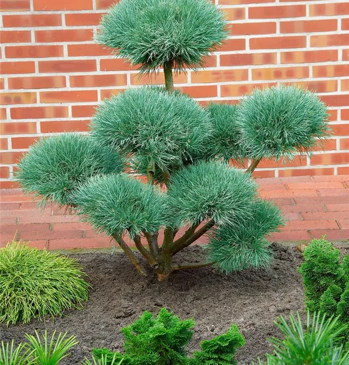 Silberkiefer 'Watereri' ist ein breit wachsender Großstrauch mit geschlossener Krone. Sie erreicht gewöhnlich eine Höhe von 4 - 5 m und wird ca. 4 - 6 m breit. Langsam wachsend. In der Regel wächst sie 10 - 12 cm pro Jahr.