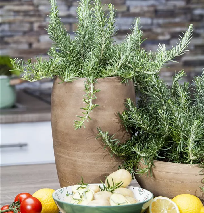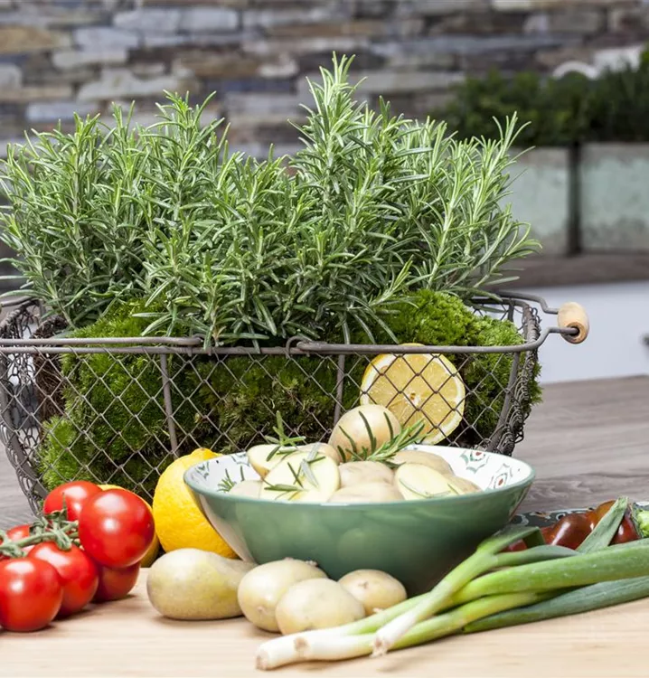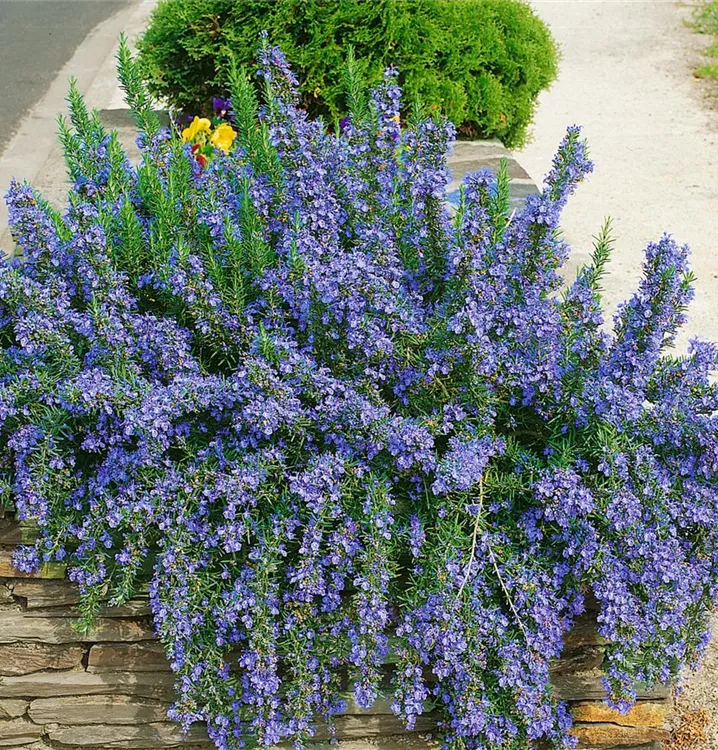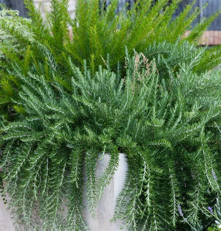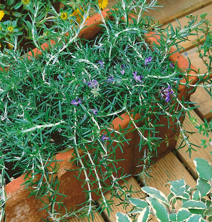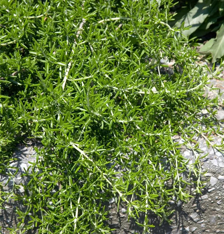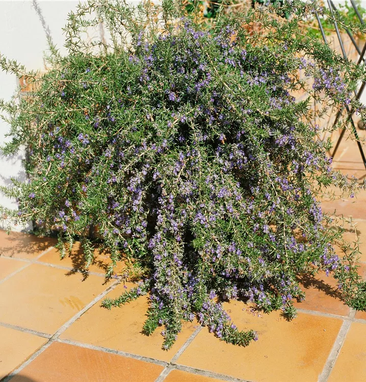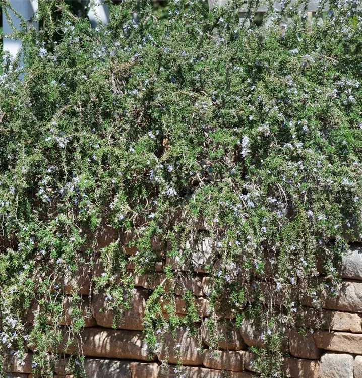 Der Mattenförmige Garten-Rosmarin (Rosmarinus officinalis) ist eine angenehm duftende Kräuterpflanze mit einem milden Geschmack. Seine grau-grünen Blätter sind lanzettlich. Für das optimale Wachstum des Mattenförmigen Garten-Rosmarins werden ein sonniger Standort und durchlässiger, nährstoffreicher Boden benötigt.