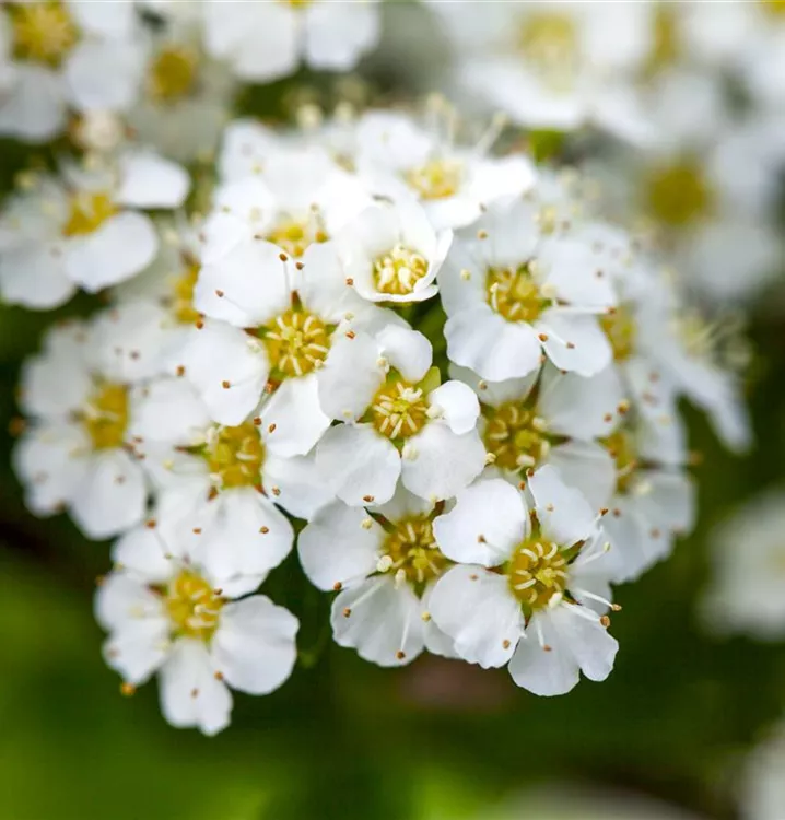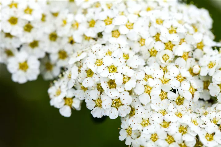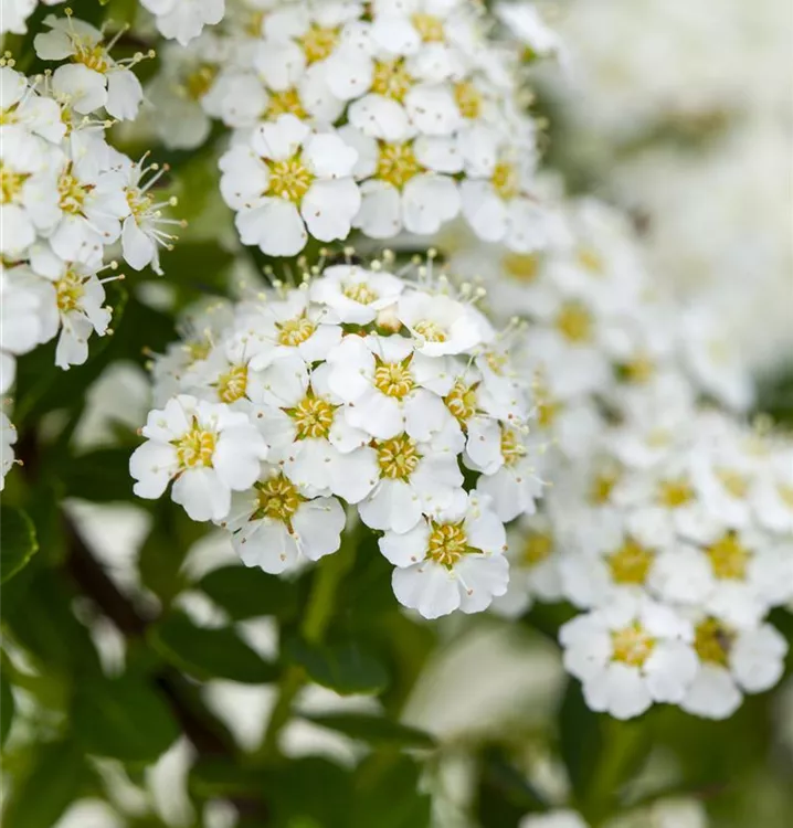 Die weißen Blüten des Braut-Spierstrauch erscheinen in Doldentrauben von April bis Mai. Diese sind angenehm duftend.